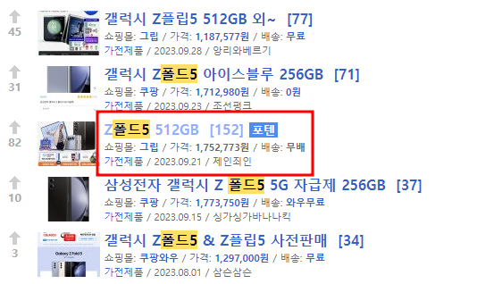 2023년 8월 초에 사전예약을 받은 폴드 5도 에펨코리아 기준으로 9월 21일 정도에 170만 원대에 구매가 가능했습니다