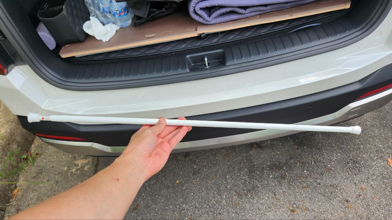 쏘렌토 기준으로 폭이 최대 120cm면 충분합니다 너무 무거운 것을 달면 더블클립 부분에 무리가 갈 수 있으므로 커튼을 제외하고는 거치하지 않을 것 같습니다 최대 하중이 1kg입니다