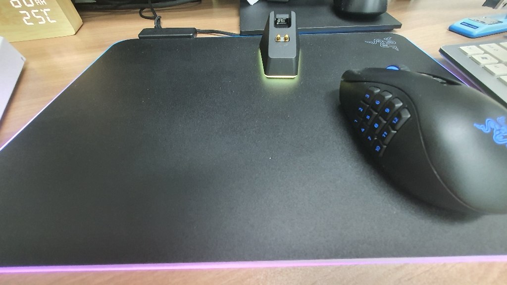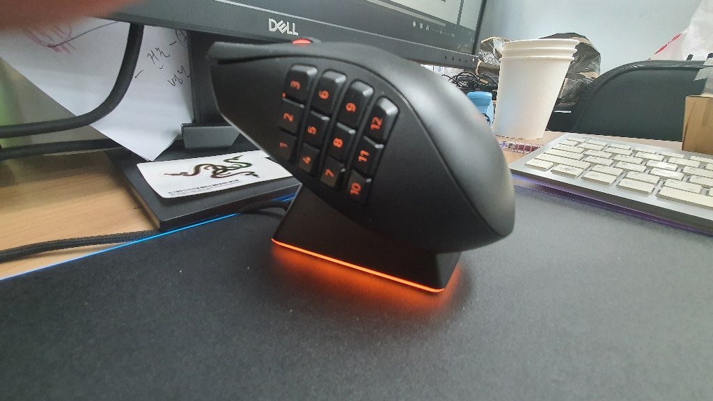 레이저 나가 프로는 주기적으로 충전해야 하며, 조명과 애니메이션을 밝게 설정하면 더 빠르게 충전됩니다. 또한 로지텍 서브 마우스와 함께 사용하여 마우스를 무단으로 만지는 직원들을 방지하는 역할도 합니다.