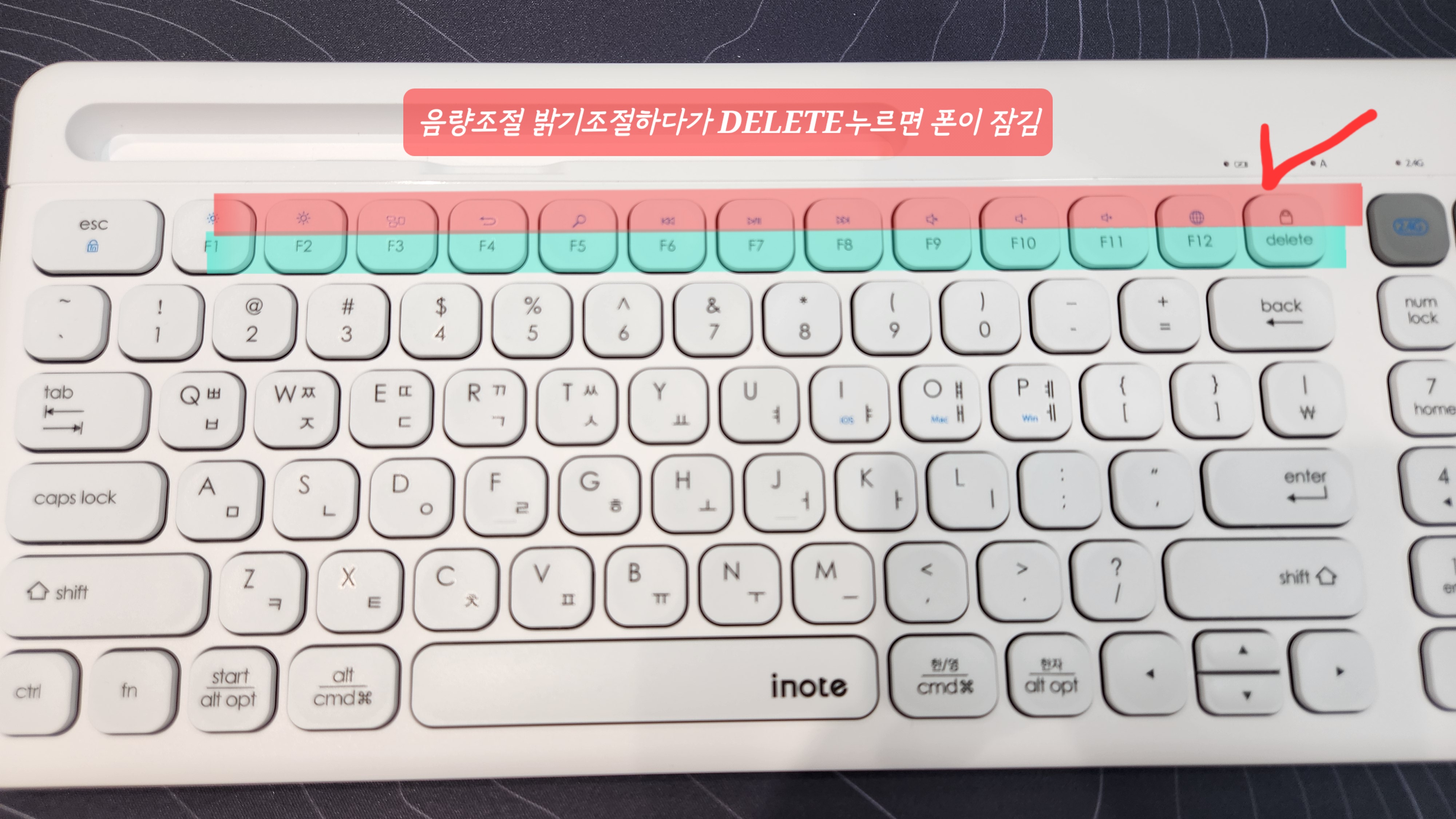 3. 멀티미디어 기능과 펑션키를 선택 사용할 수 있는데, 멀티미디어 모드에서 delete를 누르면 휴대폰이 잠겨버리는 점이 아쉽습니다.