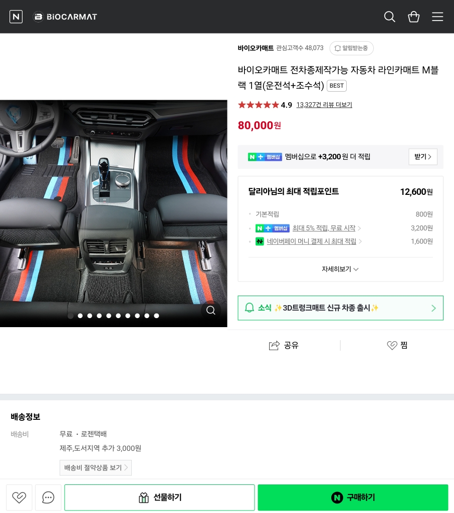 엄청나게 많은 패턴이 있고 특히 BMW M스타일 매트가 평이 좋네요