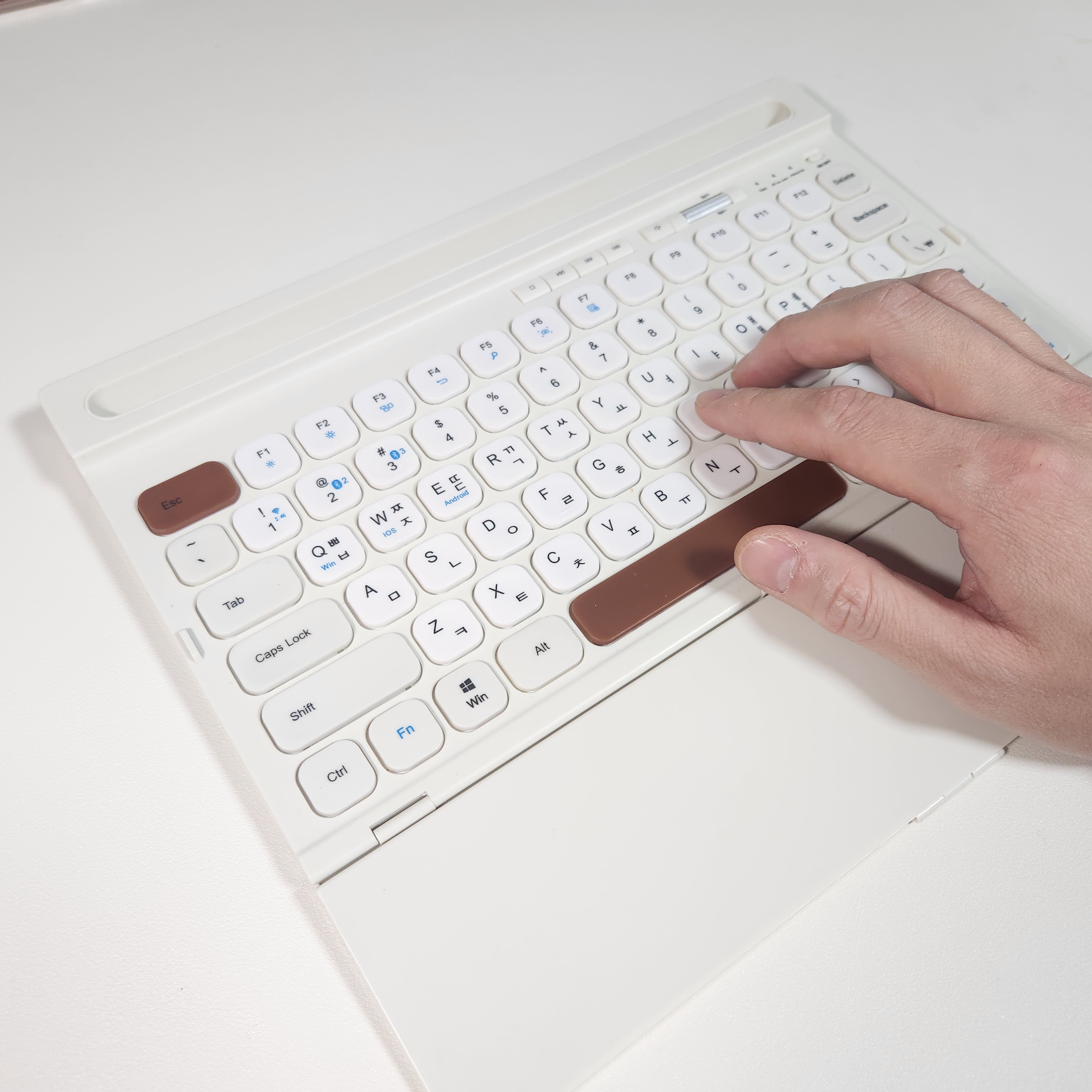 거치대 탑재 / 자체 키패드 커버 / 등 사용의 편의성에서 더 큰 만족감을 줄 수 있는 제품이라고 생각되어 저는 이 키보드를 상시 휴대하고 다니면서 활용하고 있습니다