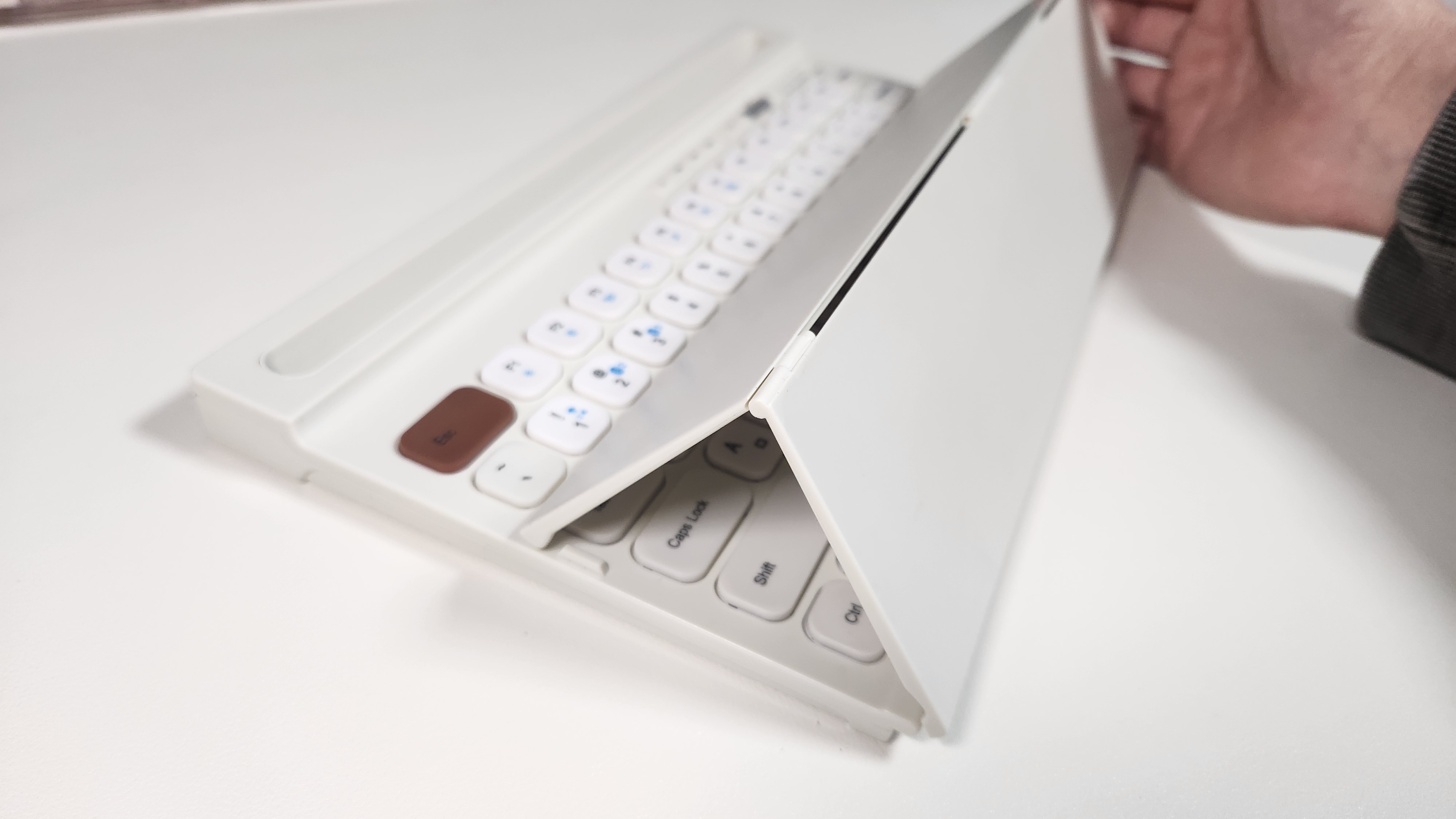 이러한 형태의 키보드는 거치 기능이 없거나 안정적인 거치를 지원하지 않는 경우가 대부분이었습니다