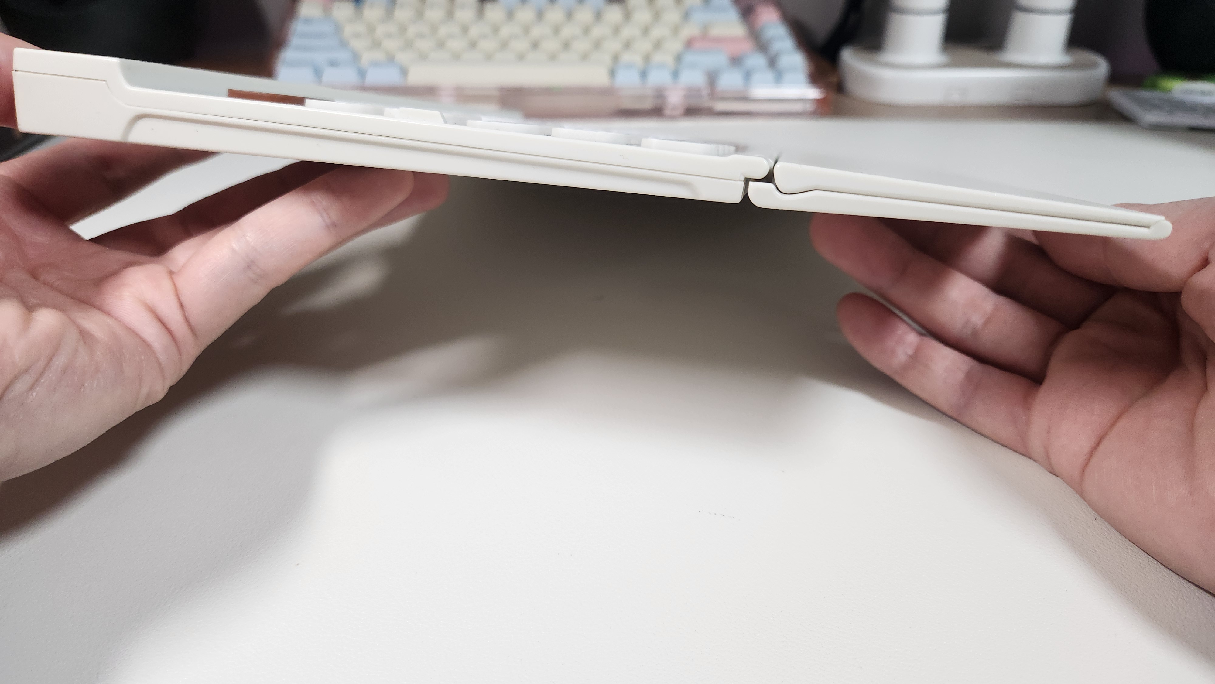 물론 옆으로 반으로 접거나 위아래로 접는 형태의 키보드도 많지만