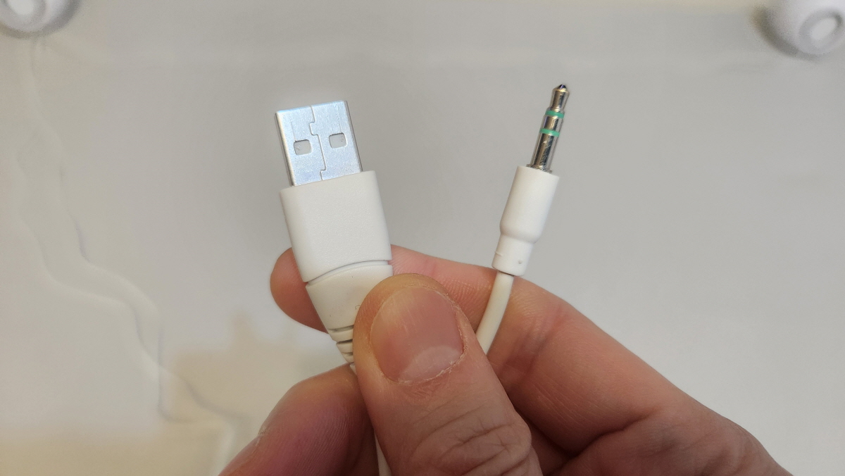 AUX케이블과 USB케이블은 RIGHT 스피커에서 연결돼 있는데 길이가 각각 1.2m로 이 또한 고정되어 있습니다