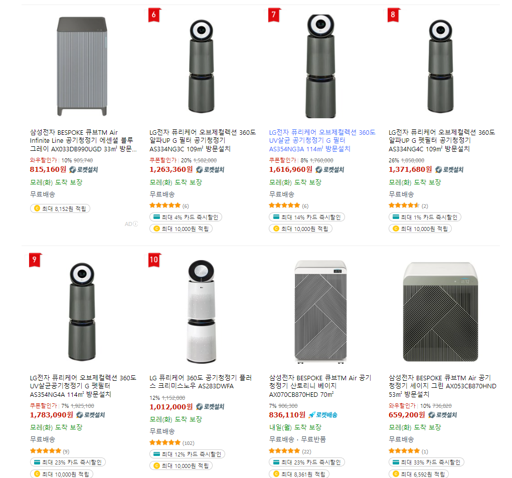 하지만 많은 분들은 가격 때문에 LG 퓨리케어에서 쿠쿠, 위닉스, 위니아, 코웨이, SK 등의 가성비 제품으로 눈을 돌리게 됩니다