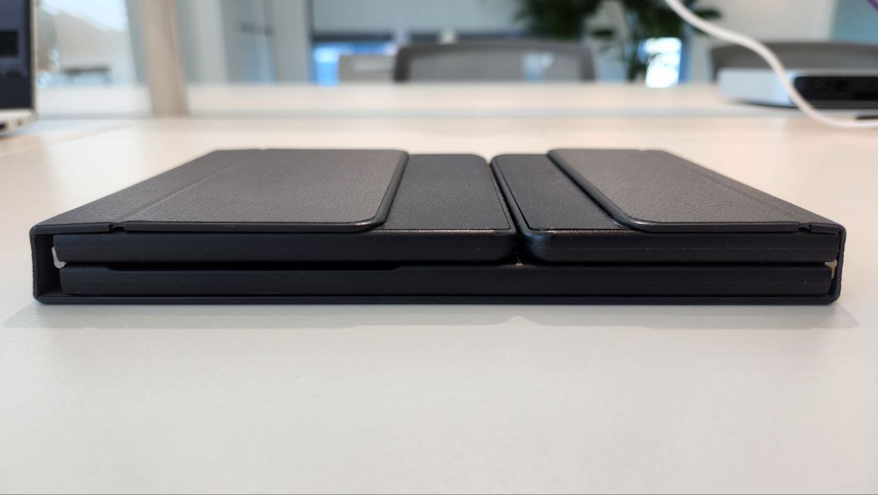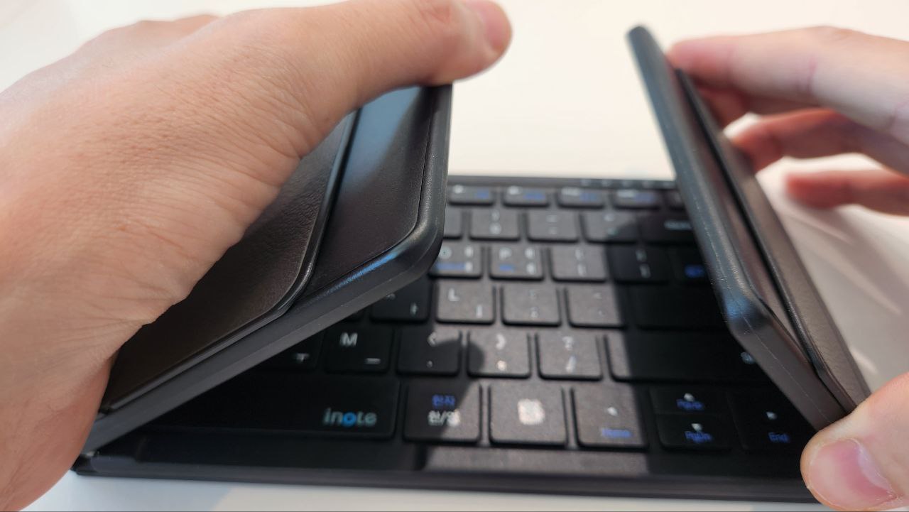 일반적으로 양옆으로 폴딩 하거나 앞뒤로 폴딩 하면 펼쳤을 때 키보드 배열이 어색하게 깨지는 경우가 간혹 있는데