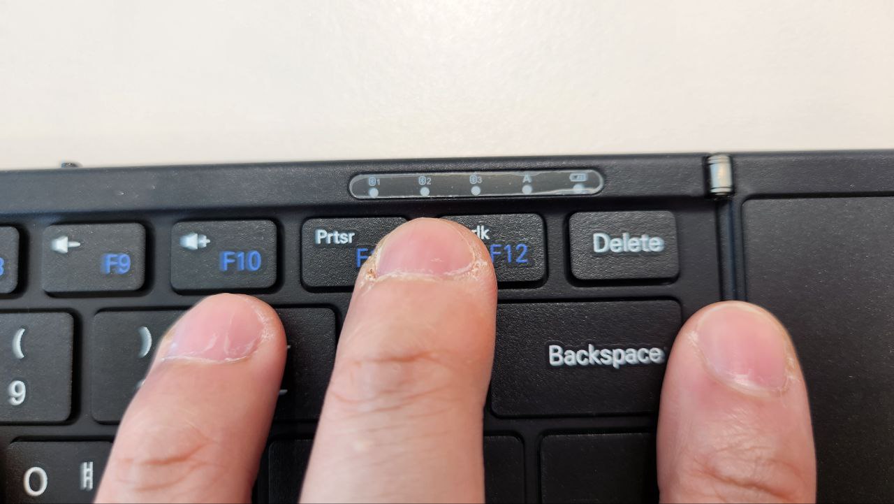 나쁘다는 것은 아니고 조금 더 쿠션감이 있으면 좋겠다는 생각을 했습니다 접이식 키보드의 특성상 접은 상태에서도 얇을 두께를 유지해야 합니다 바닥이 얇아서 그런지 타건감이 다소 딱딱했습니다. 그래도 키 배열이 좋아서 가장 중요한 오타가 발생하거나 적응이 필요한 이슈는 전혀 없었습니다 이 키보드는 시저(Scissor Switch) 스위치라고 하는데 타건감은 제가 메인으로 쓰고 있는 X500RB 보다는 약간 아쉬운 느낌이었습니다