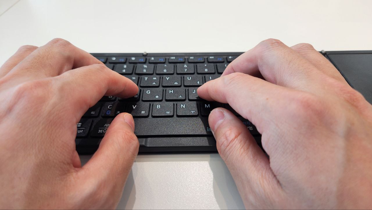이 키보드는 펼쳤을 때 정석적인 키보드 배열을 유지하기 때문에 안정적인 타건이 가능합니다.
