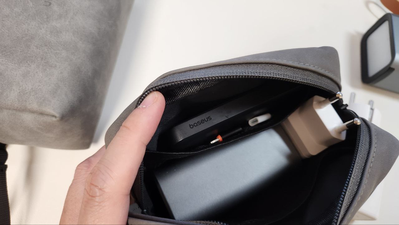 100w급 초고속충전기를 세로로 넣으려니 잘 안 들어가네요. 충전기를 제외한 20000 이상의 보조배터리와 각종 액세서리 등을 넣으니 딱 맞습니다