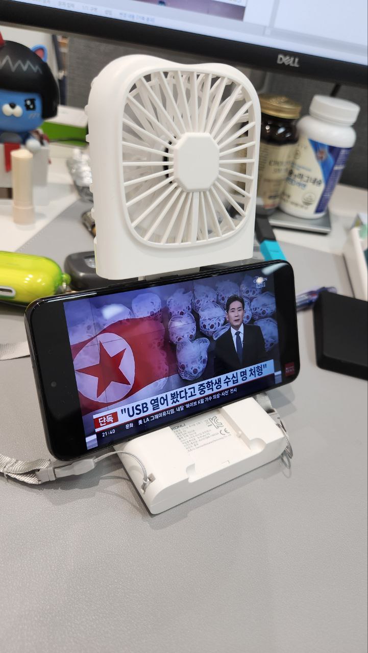 지하철이나 버스에서 선풍기를 계속 들고 있을 필요가 없습니다. 탁상용으로도 사용할 수 있으며, 높이와 각도 조절이 가능하고 핸드폰 거치 기능도 있어 바람을 쐬며 영상을 보는 깨알 같은 재미가 있습니다