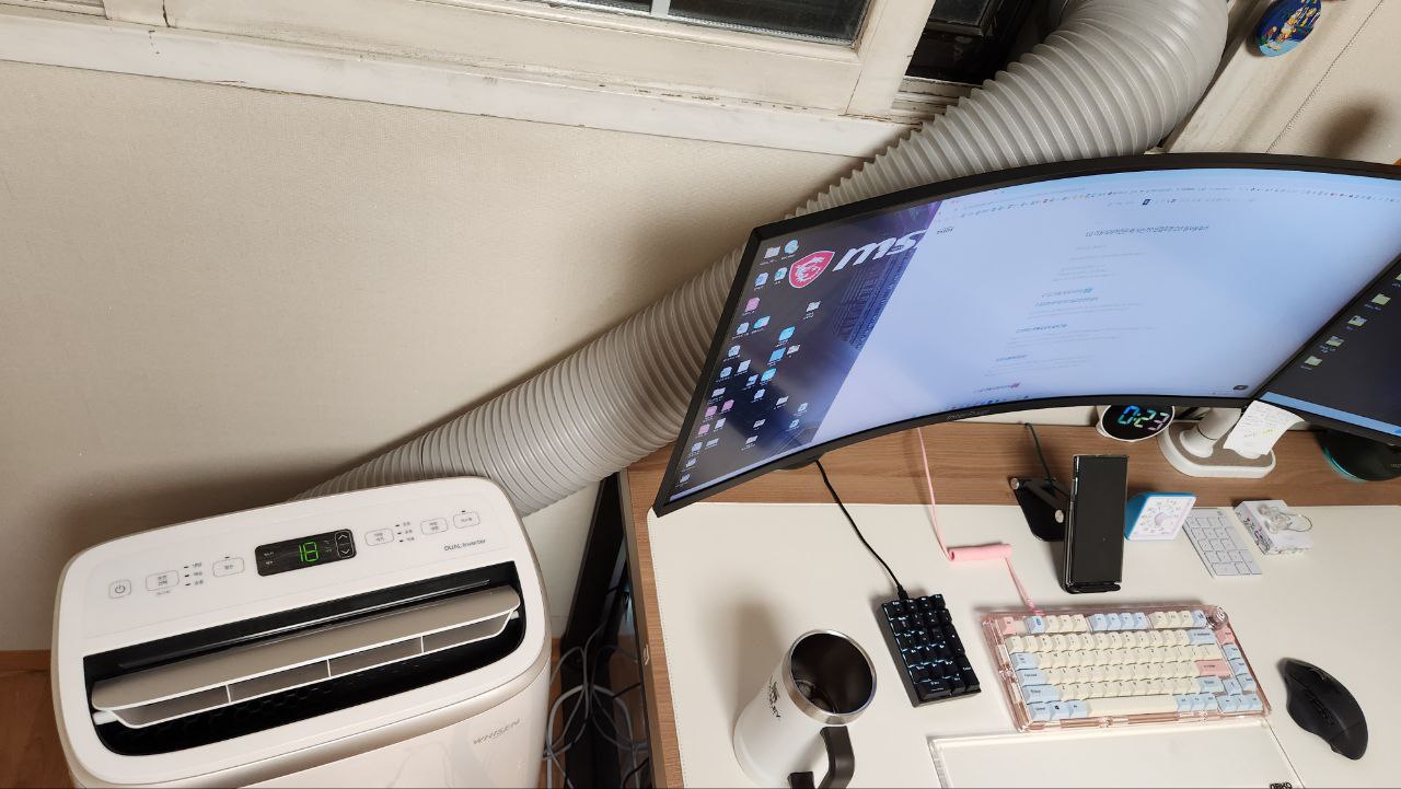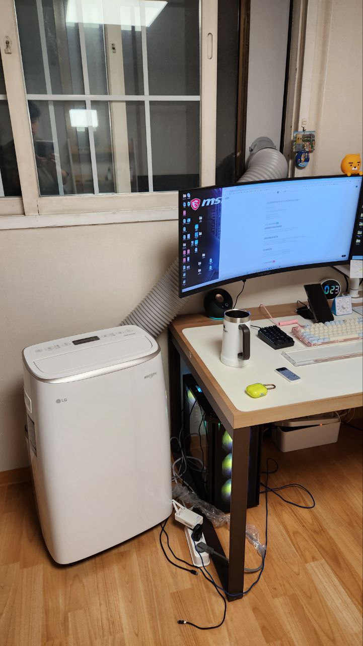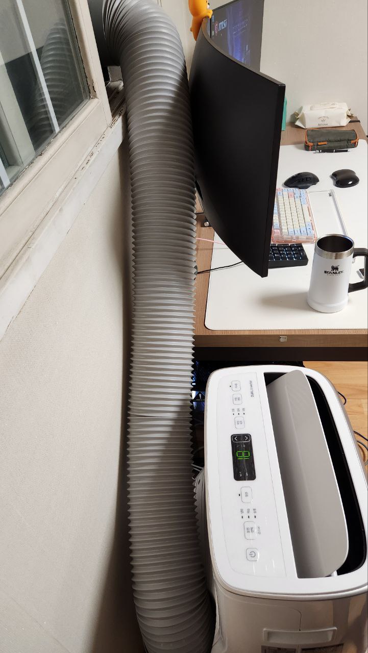 가장 BEST는 잠을 자는 방이 아닌 업무만 하는 방 특히 키보드를 두들기는 방에서 이동식에어컨 설치를 하는 것이 가장 이상적입니다